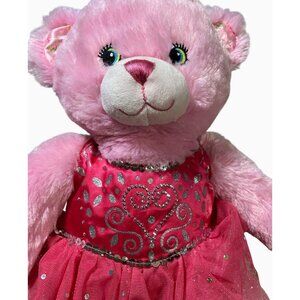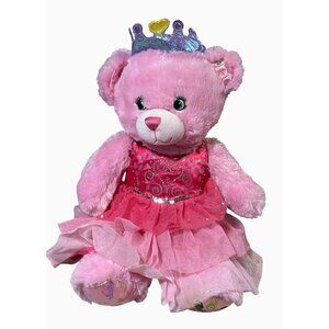 This delightful pink bear from Build-A-Bear Workshop features a charming Disney Princess dress. The bear exudes charm and elegance, with a soft plush texture, perfect for collectors or as a gift for a Disney enthusiast. Its vibrant pink color and intricate dress details make it a standout piece.