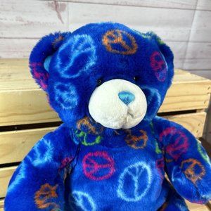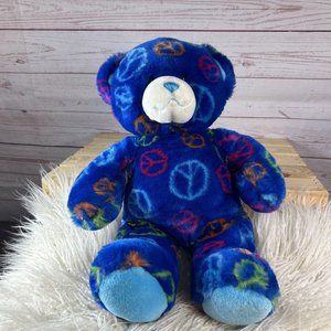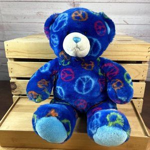 Build-A-Bear Workshop Plush Dark Blue Peace Sign Teddy Bear Stuffed Animal Approx 14"