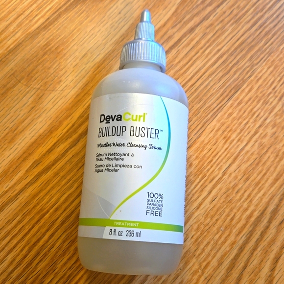 New, unused, full size 8 oz BuildUp Buster from DevaCurl. This non-stripping cleanser with the Clarifying Complex helps remove product buildup on all curl types