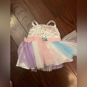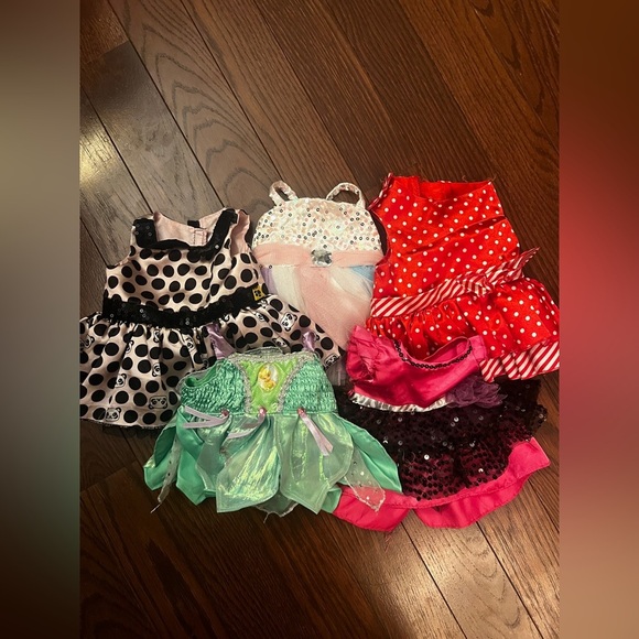 Good pre loved condition. No holes or tears. Includes 5 dresses - one is a Disney Tinker Bell costume!
