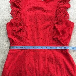 Built By Dreamers Red Lace Jumpsuit Size Medium Eyelet Ruffle Hem Capri Length