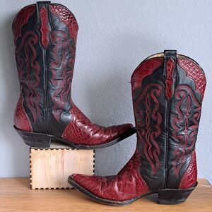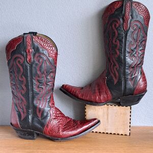 Buitre Black Red Cowboy Boots Women's 8.5 9 Mex 25 Snakeskin Vintage Western