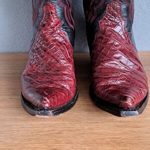 Buitre Womens Black Red Leather Snakeskin Western Cowboy Boots 731