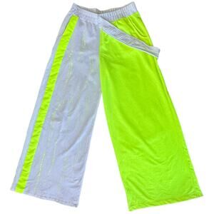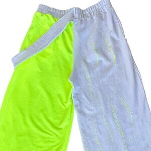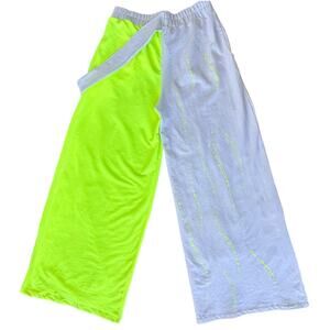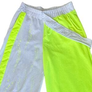 Bukezy Wide Leg Pants High Rise Paint Splatter Women Size Large Neon Green White