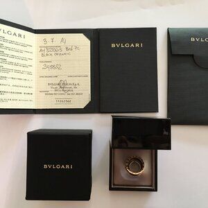 Bulgari B. Zero 1 Ring Rose Gold 18k and Black Ceramic 4 Bands Mint condition like New with ALL papers / bag and documentation! Even the ribbon included. This ring was bought at the Bulgari / Bvlgari boutique in Florence, Italy. One owner, no scratches or major wear in tear. The B.zero1 four-band ring has two 18 kt rose gold loops and a black ceramic spiral, inspired by the Colosseum in Rome, made in Italy! A jeweler would love this piece. Quiet luxury and a classic.