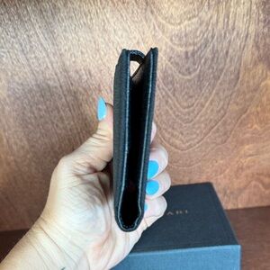 Elegant black canvas wallet with Bulgari logo. Sleek design. Perfect for any occasion.