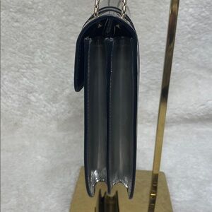 Chic silver bag with iconic snakehead closure. Features elegant chain strap. Ideal for stylish outings. Strap can be used as a single or double. Strap is more champagne in color. Magnetic snake/ serpentine head closure.