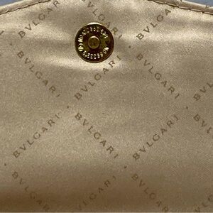 Brand new suede Bulgari cosmetic case with snap closure. Interior pouches for small bottles. These were handed out in Emirates Private Suite Class. Extremely rare.