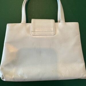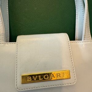 Chic Bulgari shoulder bag in white leather. Features a sleek design with a gold accent.