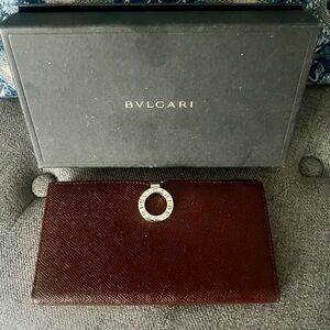 Bulgari brown leather long wallet w silver accents