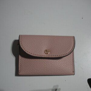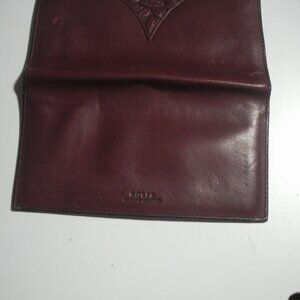 Seven wallets, Tooled tan leather wallet, Etienne Aigner Black wallet w/keychain and dark maroon Etienne Aigner leather wallet, tan PU leather wallet, nine west tan leather wallet w/strap, 100% green cotton wallet made in Guatemala, CLN tan & brown wallet leather new w/o tags, three checkbook covers one is rolf genuine leather maroon, second one is coach tan leather and the last one is nylon red cover, three coach lanyards coin/card case with keychain holder, one has little hearts hanging from it and the other has little flowers on front, they all three have straps also an Anne Klein pink change purse w/keychain, one silver metallic bag with chain strap, two makeup cases one is new w/tags, butterfly on front and is red, the other is cream wicker. Some items may need minor work or cleaned.
