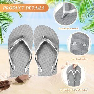 Features: This set includes 24 pairs of lightweight flip flops in a variety of sizes suitable for adults, teens, and kids. Each pair has a shiny, comfortable pearlescent strap and comes in its own drawstring bag for easy storage and gifting. Great for weddings, pool parties, resorts, or as guest favors.