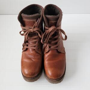 Bull Boxer Boots Size 9M Brown Leather Combat Carmen Lace Up Chunky Heel Lug