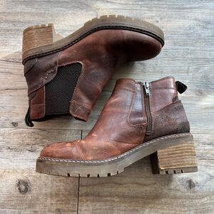 Bull Boxer Chelsea Boots Women's 8 Brown Leather Zip Heel Fall Rustic