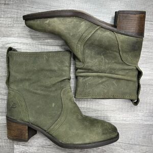 Bull Boxer Sally Green Distressed Leather Ankle Boots Booties Size 10