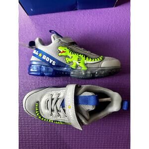 Bull Boys T-Rex Boy Sneakers Dinosaurs Size 1 US Grey Blue Light-Up Velcro NEW