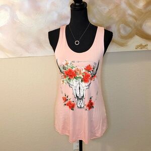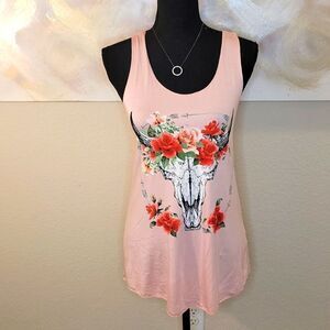 Bull Skull with Infinity Arrows & Floral Detail Tank Top Pink
