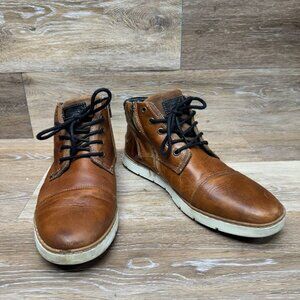 Bullboxer Adyn Cap Toe Brown Leather Side Zip Ankle Boot Men's Size EU 45