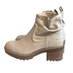 Bullboxer B-52 Beige Luge Sole Ankle Booties Women's 9M Chunky Heel Side Zip