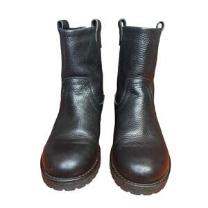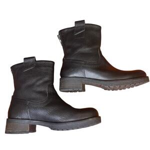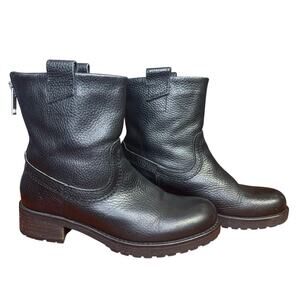 Bullboxer “Molly” black leather ankle boots with zip-back detail. These stylish and rugged boots feature a genuine leather upper, block heel, and a durable lug sole — perfect for edgy everyday wear. Made in Portugal with high-quality craftsmanship.