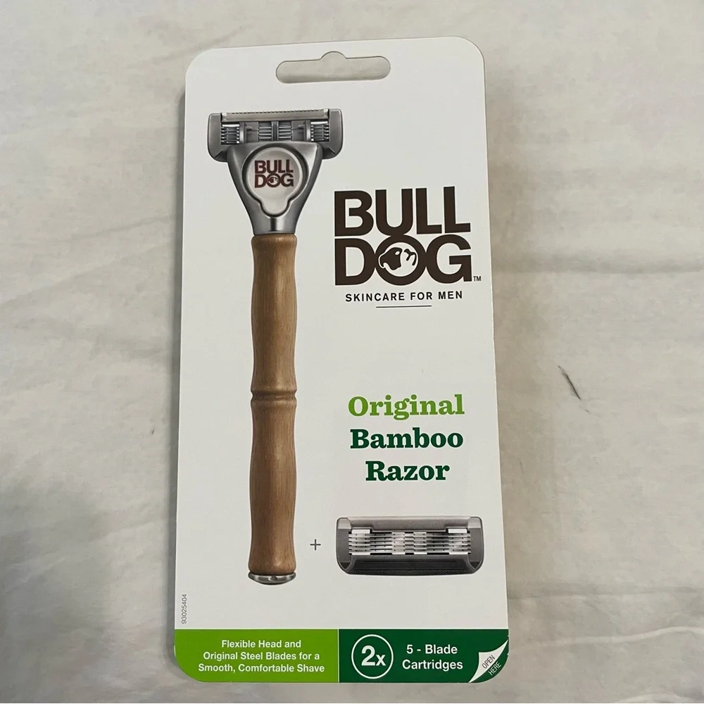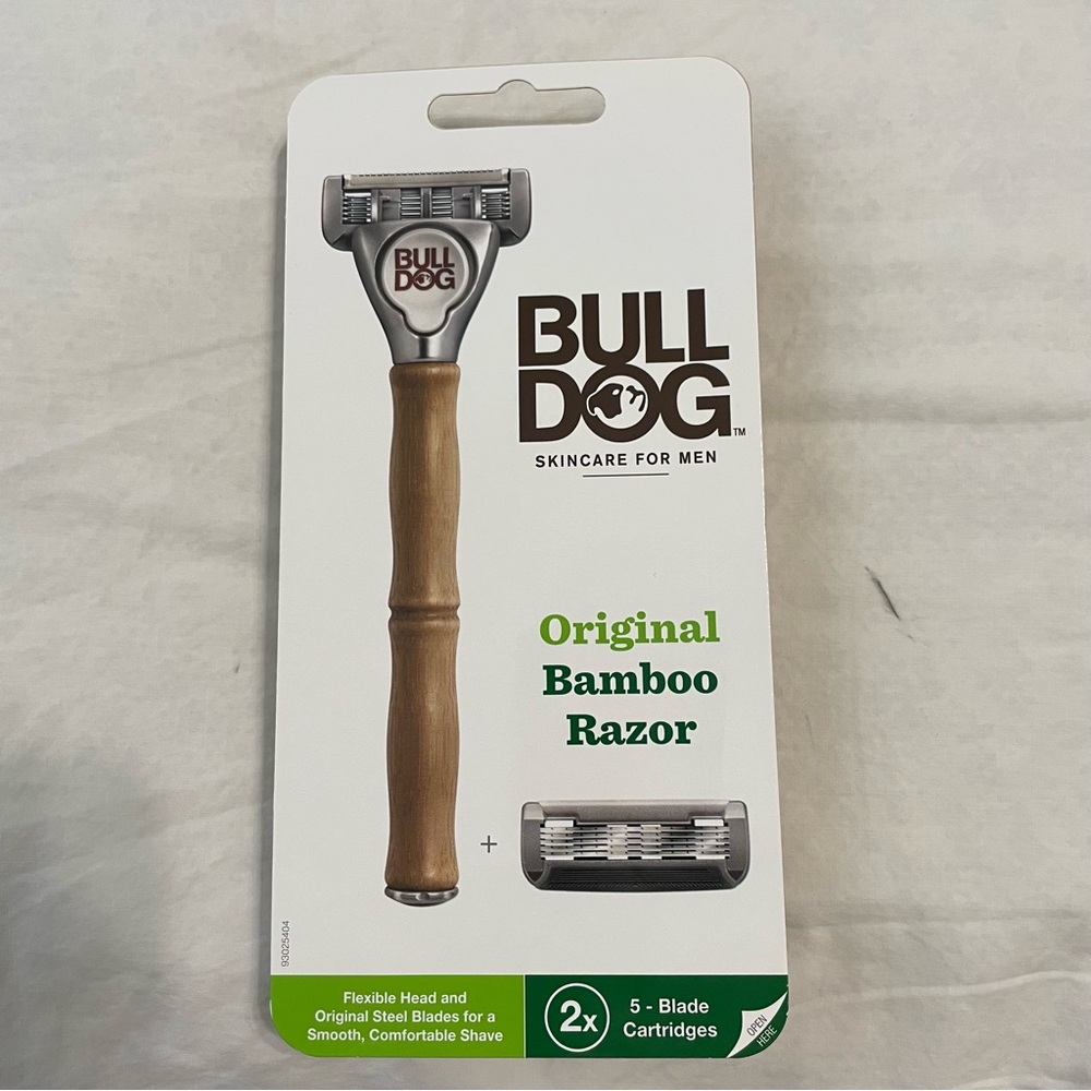Bulldog Original Bamboo razor with a metal head. Features a lubricating strip and precision trimmer. Flexible head and original steel blades for smooth, comfortable shave!