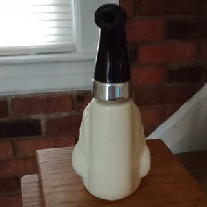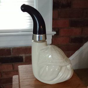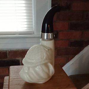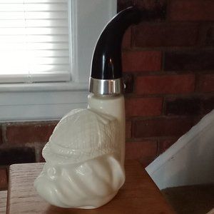 Vintage 70s...collectible... English Sherlock-style Bulldog Pipe Decanter Bottle...ivory milk glass...6" high X 4" wide...by Avon...holds 6 fl oz Oland Mens Cologne...partially full...no original box...used/good condition.