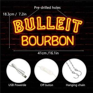 ⚡Bulleit Bourbon Whiskey Neon Sign for Bar Pub man Cave or Party,Bright Led Light Suitable for Garage Decor or Business Display,5V USB Powered Easy Hanging.⚡