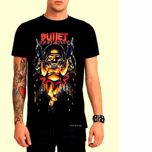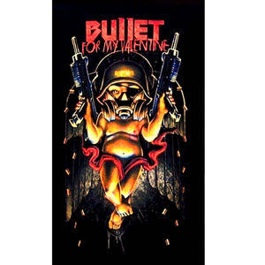 Bullet For My Valentine t-shirt featuring a baby with a gas mask and submachine guns. 100% heavy cotton.