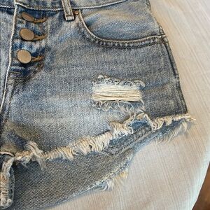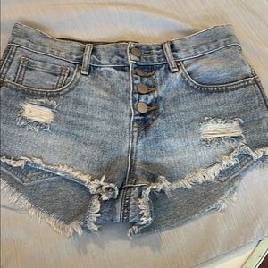 Bullhead Blue Distressed Jean Shorts with Frayed Hem