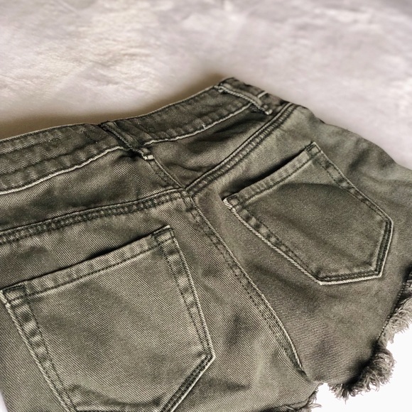 Detail: Distressed look, distressed ends, high rise, army green (a little darker than depicted)