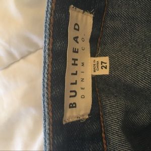 Super cute Denim mini skirt from bullhead. Excellent quality material with a gold snap button closure on the front. Worn only a few times, fits a size 26-27 in the waist and hips.