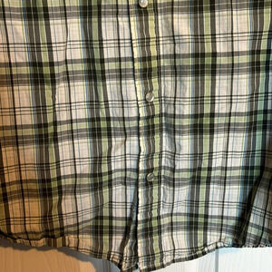 Stylish plaid design. Short sleeves. Button-down front. Perfect for casual wear.