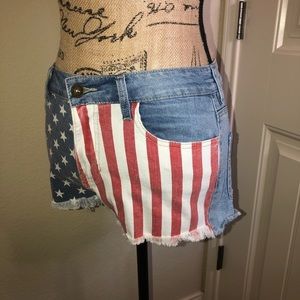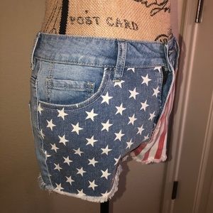 Bullhead High Rise Red & White Stripes & Blue & White Stars Denim Shorts Size 7