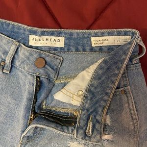 Light wash, distressed high rise jean shorts. Bullhead brand. Size 25. Worn once!