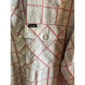 Bullhead Western Pearl Snap Shirt - Mens XXL - 100% cotton - red grey pattern