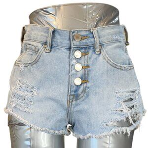 Bullhead Women Jean Shorts High Rise Distressed 100% Cotton (Sz24 W24)