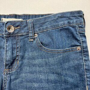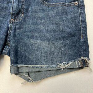 Bullhead Womens Jean Shorts Blue Stretch Cuffed Whiskered Frayed Zip Low Rise 5