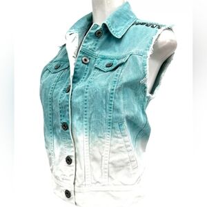 Rare denim vest 2 colors, aqua blue and white. For women, size Large. Used in good condition. Look at the pics for measurements and more details. Any questions let me know please.