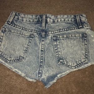 Distressed , light wash, mid waisted shorts