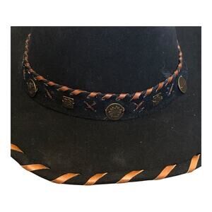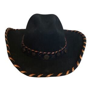Bullhide Western Cowboy Hat Black Wool Felt Braided Trim Conchos Size Large