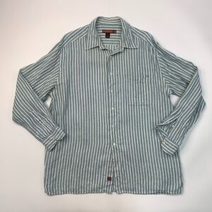 BULLOCK JONES LINEN SHIRT MENS XL EXTRA LARGE DRESDEN BLUE STRIPED BUTTON UP