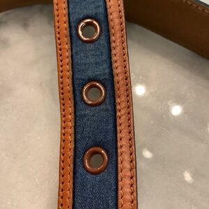 This leather and blue jean belt is in excellent condition