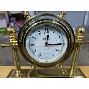 Bulova Battery Operated Ship’s Wheel Brass Desk Clock Nautical 8 1/2"
