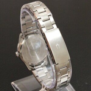 From the Corporate collection by Bulova, this ladies quartz watch has a beautiful combination of polishing and brushing on the stainless steel case and bracelet. It features a silver dial with Arabic numerals at 3, 6, 9 and 12:00. This watch is new in box and works as it should.