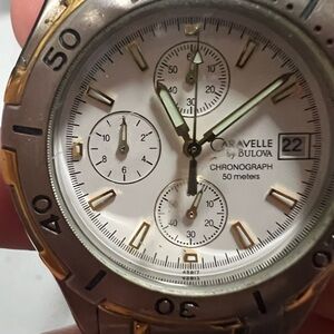 Bulova Chronograph White Dial Watch 2 Tone 45B17