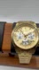 Stylish Bulova watch with gold-tone finish. Features chronograph dials and a polished bracelet.