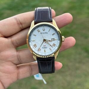 Bulova Classic Wilton GMT Automatic Brown Leather Strap Watch | 43mm Mens