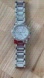 Description: Gorgeous watch! Genuine Diamonds (tested and confirmed). Chronograph mother of pearl white dial with date window. Stainless and luminous hands and markers. Mineral Crystal. Stainless steel bracelet with hidden clasp closure. Just cleaned and serviced with a new battery installed. Works well!