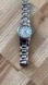 Description: Genuine diamonds on bezel (tested and confirmed to be real). Gorgeous pearl dial with separate independent seconds hand. Blue metallic and luminous hands and markers. Stainless steel bracelet with hidden push-button clasp. Just cleaned and serviced with a new battery installed. Works well!