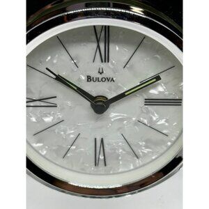 Bulova mantel clock, pearl face clock, silver desk clock, beveled glass clock, B2454, clock for repair, parts clock